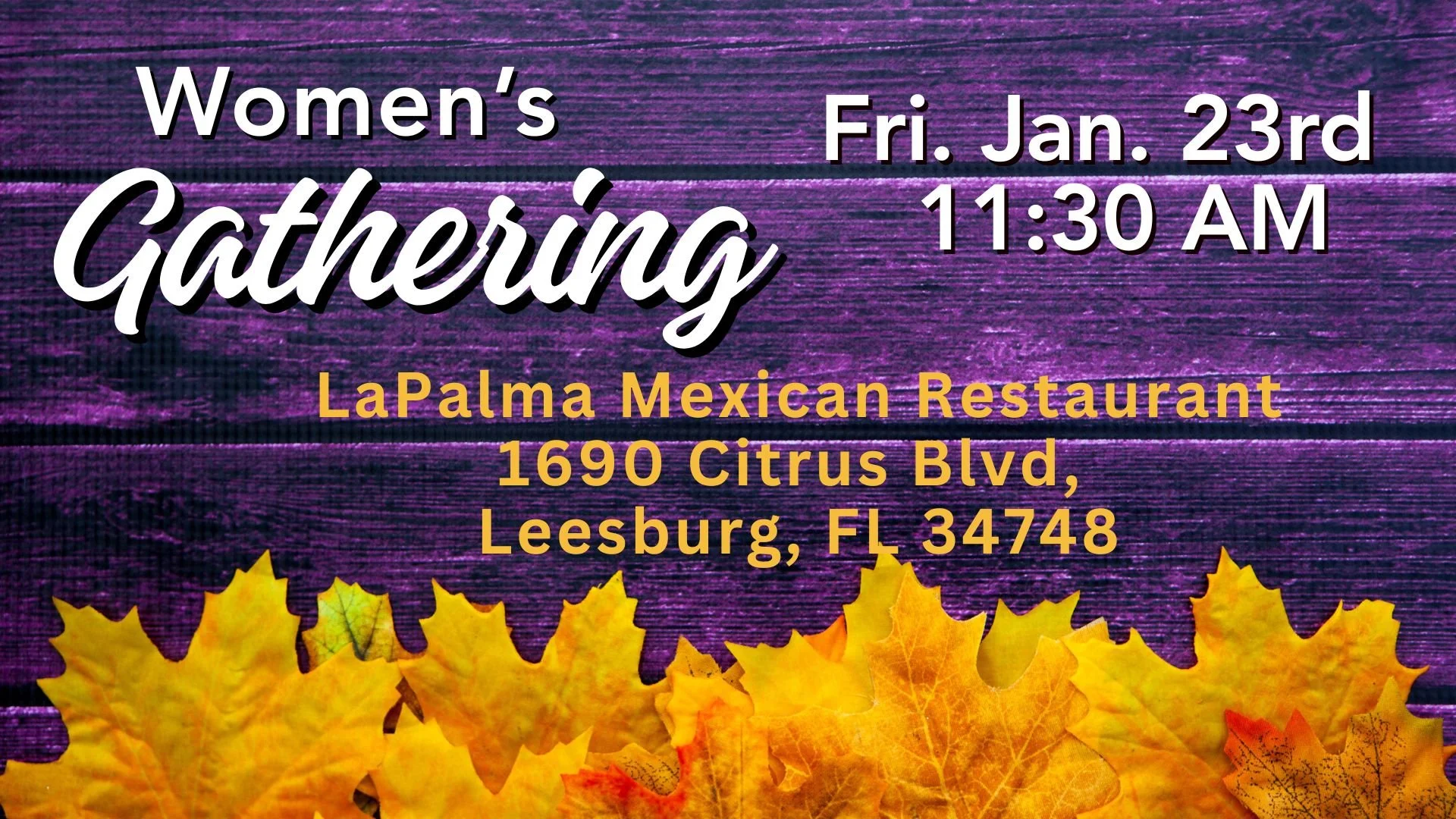Friday, January 23rd @ 11:30 AM meeeting at LaPalma Mexican Restaurant 1690 Citrus Blvd. Leesburg, FL